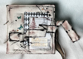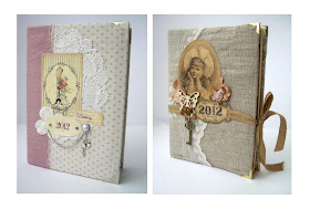 Книга для хранения воспоминаний 2012 года. Материалы: ткань, бумага 7 gypsies ''mesofauna'', бумага Rayher, натирки Prima Marketing, пуговицы, акриловая краска.